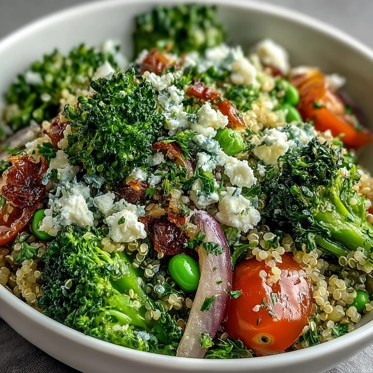 Save to Pinterest There's something about a grain bowl that feels like you're eating a little garden—crisp, colorful, and somehow both light and deeply satisfying. I discovered this particular combination on a Tuesday afternoon when my refrigerator was playing its usual game of near-empty shelves, and I found myself reaching for quinoa, some sad-looking broccoli that needed rescuing, and a block of feta that had been waiting for its moment. What emerged was so good that I've been making it ever since, tweaking here and there, but always returning to this foundation of nutty grains, tender vegetables, and that salty-tangy cheese.