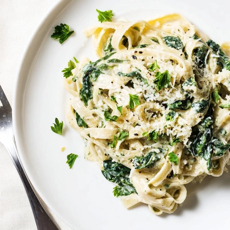 Save to Pinterest There was a Tuesday evening when I opened the fridge and found spinach wilting, a block of Parmesan, and not much else. I wasn't in the mood for anything complicated, just something warm and filling that didn't require a trip to the store. That's when I threw together this creamy garlic spinach pasta, and it turned out so good I've been making it on repeat ever since. It's become my go-to when I need comfort without the fuss.