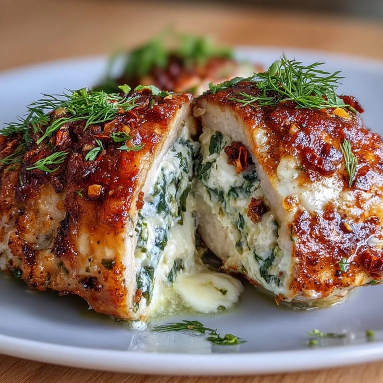 Save to Pinterest A friend once handed me a plate of these stuffed chicken breasts at a dinner party, and I remember being genuinely shocked that something so elegant came from her weeknight kitchen. The chicken was impossibly juicy, the feta and spinach filling bright and salty against the tender meat. I pestered her for the recipe that night, and she laughed, saying it looked fancy but was actually one of her go-to moves when she wanted to impress without spending hours cooking. Now I understand exactly what she meant.
