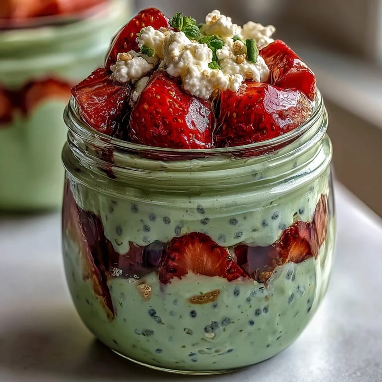Save to Pinterest There's something almost meditative about layering overnight oats in a mason jar on a quiet morning, watching the pale cream swirl with deep green matcha and ruby strawberries. I discovered this combination by accident, really, when I had leftover matcha from a failed latte attempt and a container of strawberries that needed rescuing. What started as a way to use things up became my go-to breakfast on days when I needed something both beautiful and nourishing without the fuss. The jar sits in my fridge like an edible time capsule, everything settling into perfect harmony while I sleep.